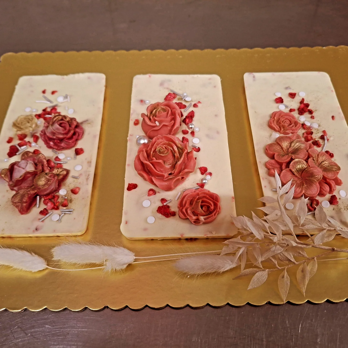 Peče piškote in drobno pecivo ter torte na kos po naročilu ter monoporcijske sladice. In izdeluje sladke, domače čokolade, ki so lahko izvrstno darilo.